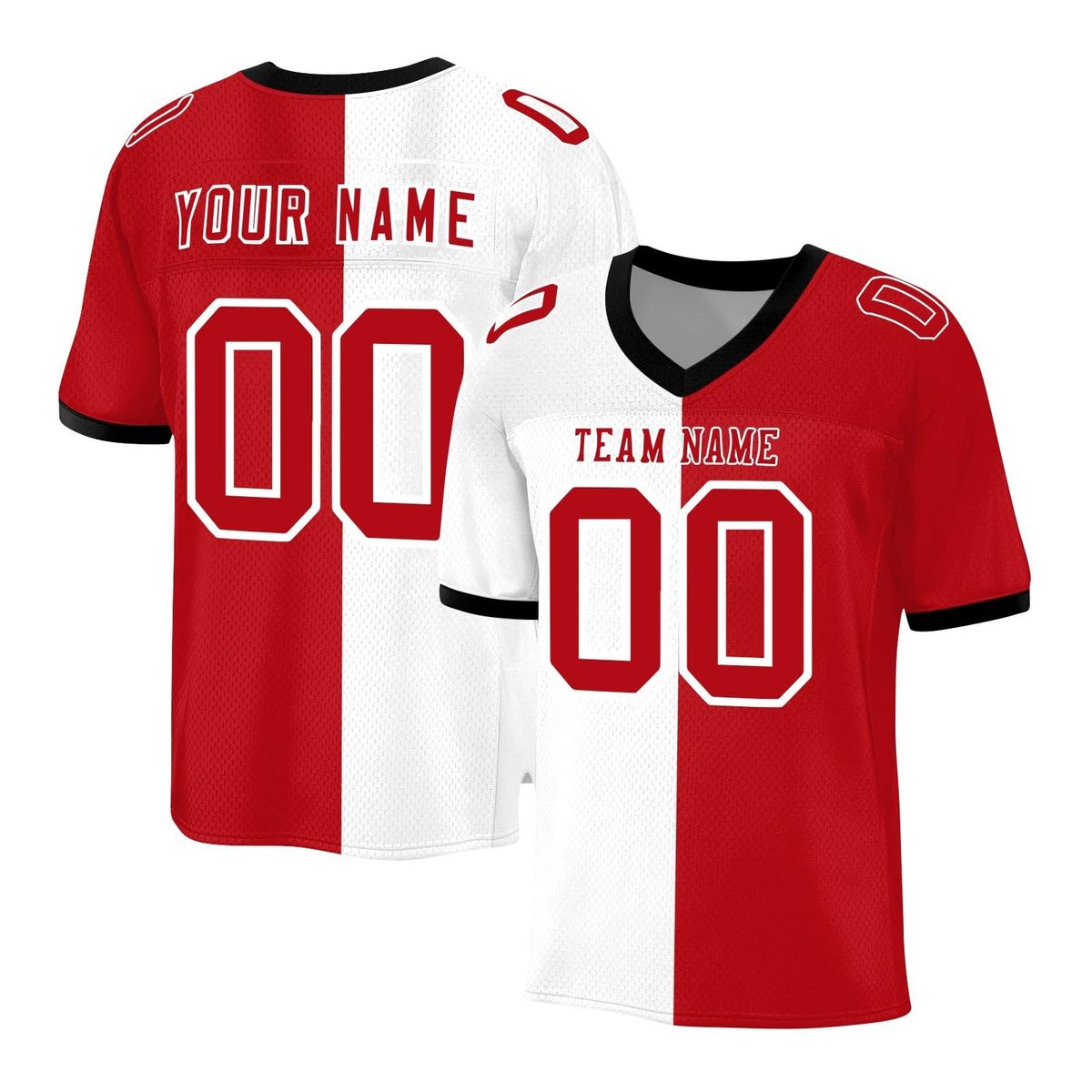 Custom-designed sports jersey with name printing, made from breathable fabric and available in multiple colours for a bold, professional on-field look.